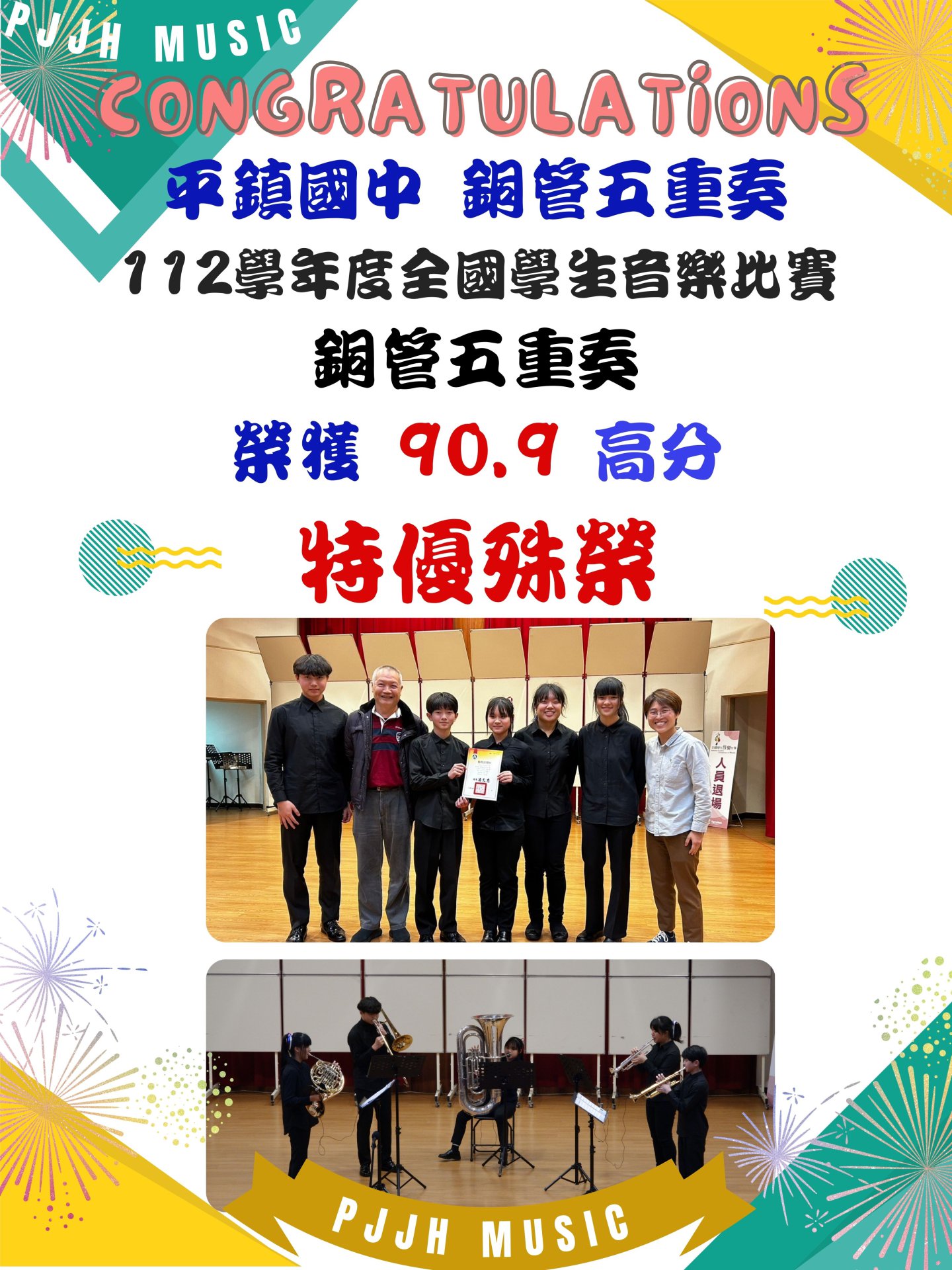 112學年度全國學生音樂比賽 銅管五重奏 特優:桃園市立平鎮國民中學-啟發潛能